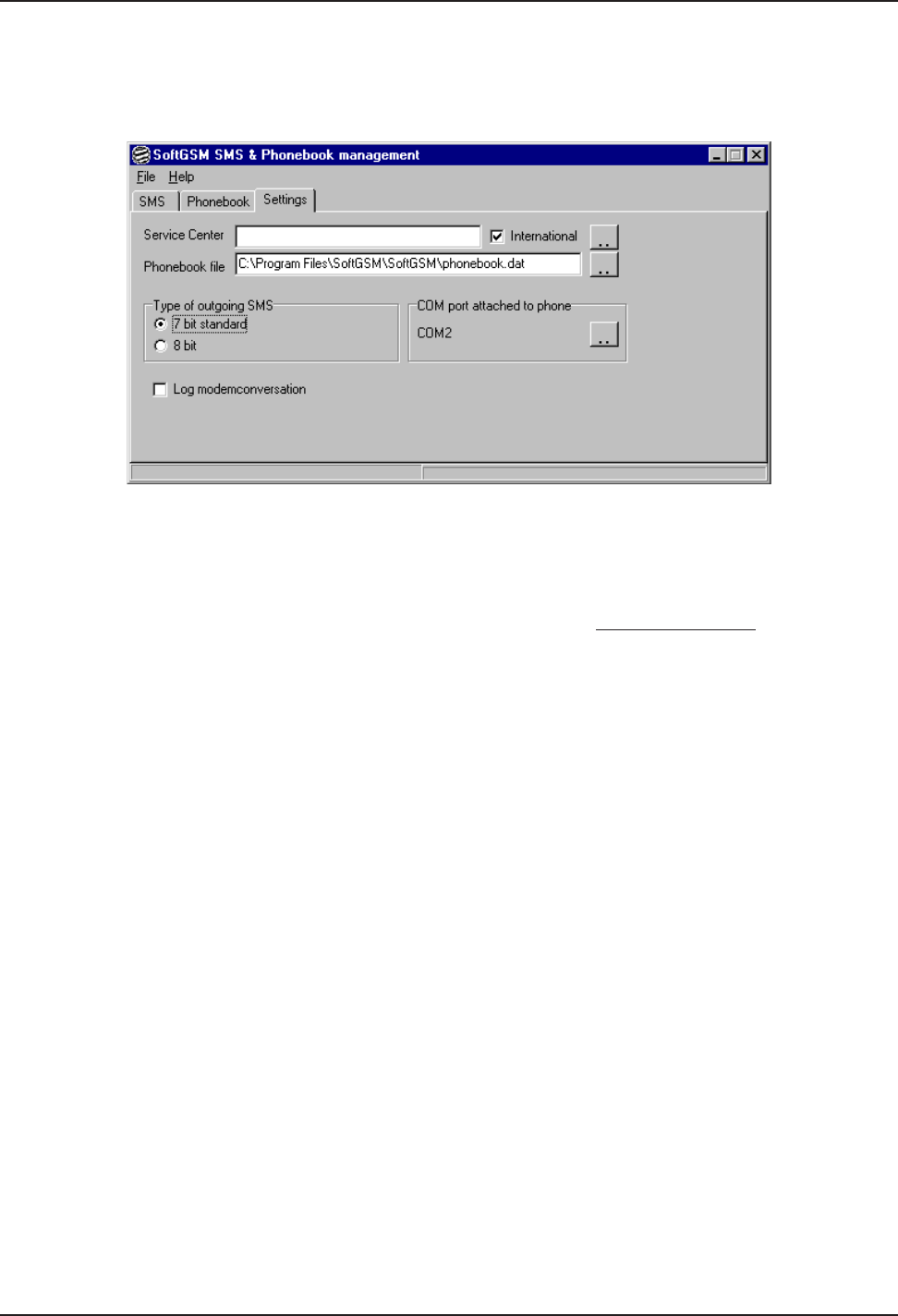 Figure 3-3. SoftGSM SMS & Phonebook management (Settings)