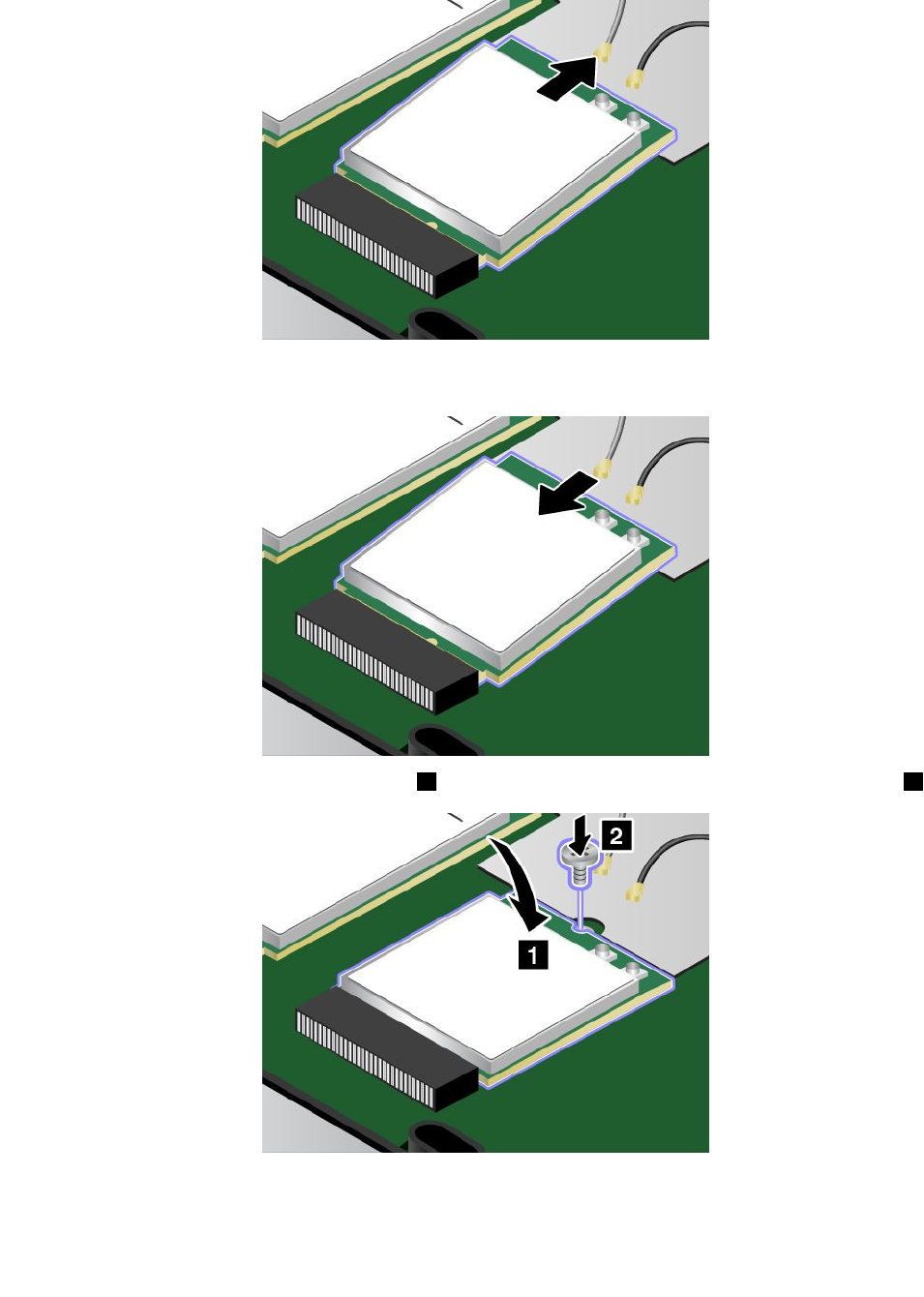 9.PivotthenewwirelessLANcarddownward1,andtheninstallthescrewtosecurethecardinplace2.